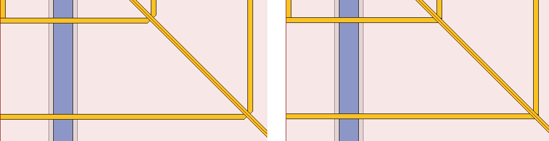 Pro násobné vazníky je dostupné nastavení "Násobné vazníky shodné podle krajního - pilovité zakončení". Pokud je toto nastavení zapnuté, program vytvoří všechny vrstvy násobného vazníku identické dle vrstvy s nejkratším úkosem. Toto nastavení zjednodušuje výrobu vazníků (není nutné vyrábět rozdílné vrstvy), zároveň však redukuje plochu styku vazníků a tedy i možnosti nosného propojení. Pokud není toto nastavení zaškrtnuté, program protáhne každou vrstvu tak, aby zcela přiléhala ke vztažnému vazníku.